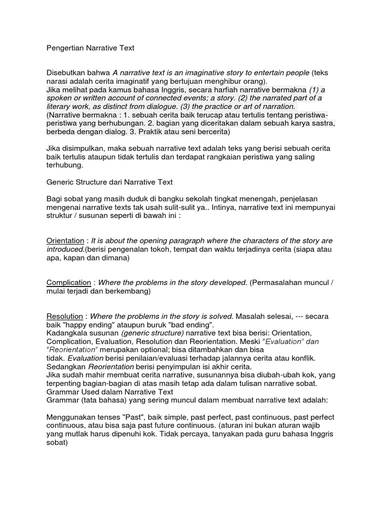 8+ Teks Naratif Bahasa Inggris. Yang merupakan bagian penting dari teks naratif adalah bentuk atau mode naratif dan metode yang digunakan untuk berkomunikasi narasi melalui. Once upon a time, there was a family of farmers.